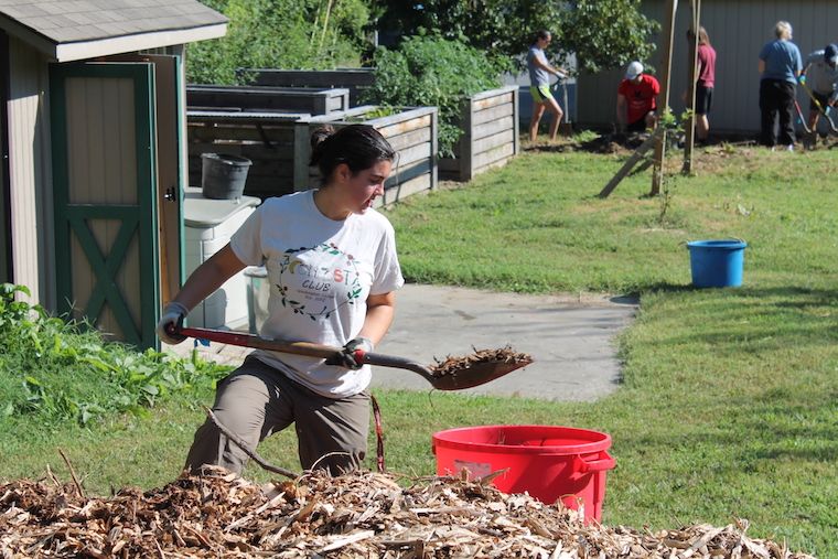 On Labor Day, 15 students and a handful of faculty gathered in the campus garden for a workday, organized by the Student Government Association (SGA) and the student garden and composting clubs.