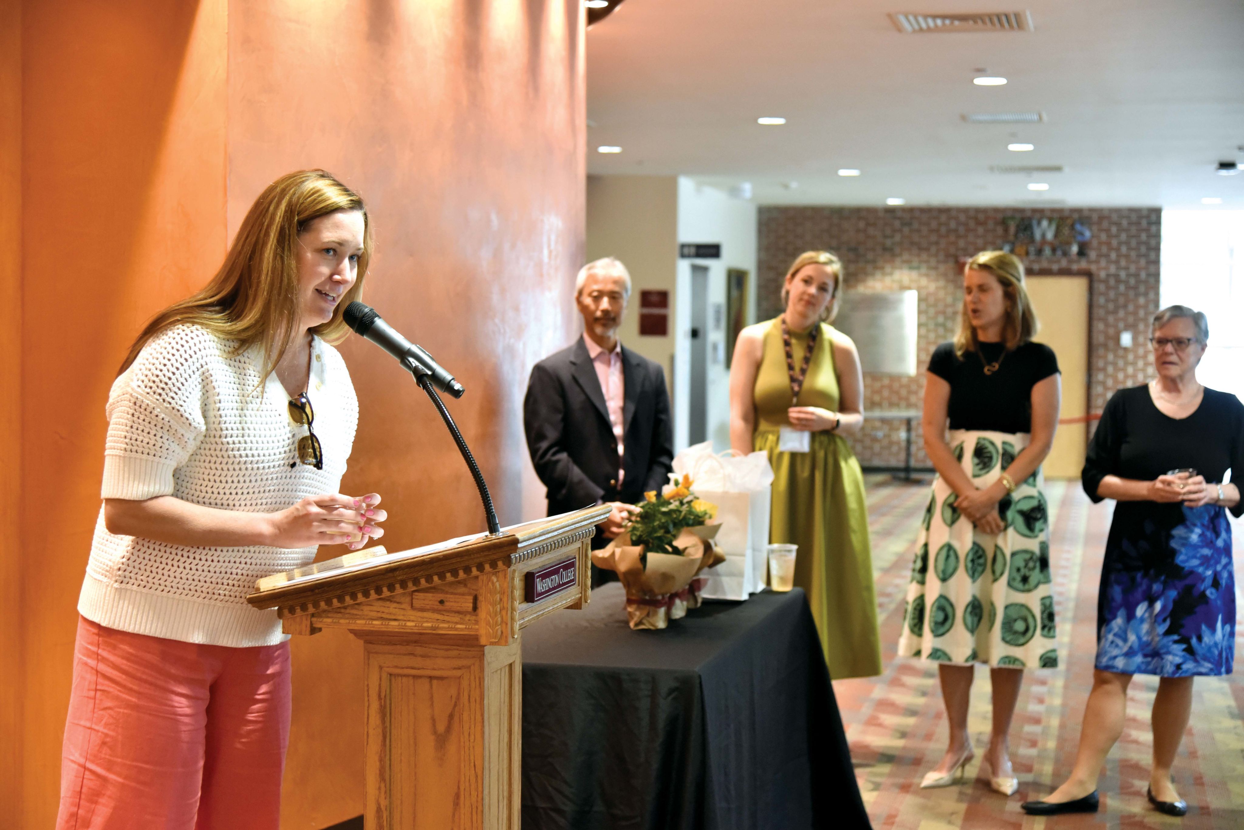 Jenn Svehla ’03, Chair of the Washington College Alumni Board, speaks at the Alumni Toast to the Class of 2024 during Commencement Weekend. Photo by Tim Corrao.