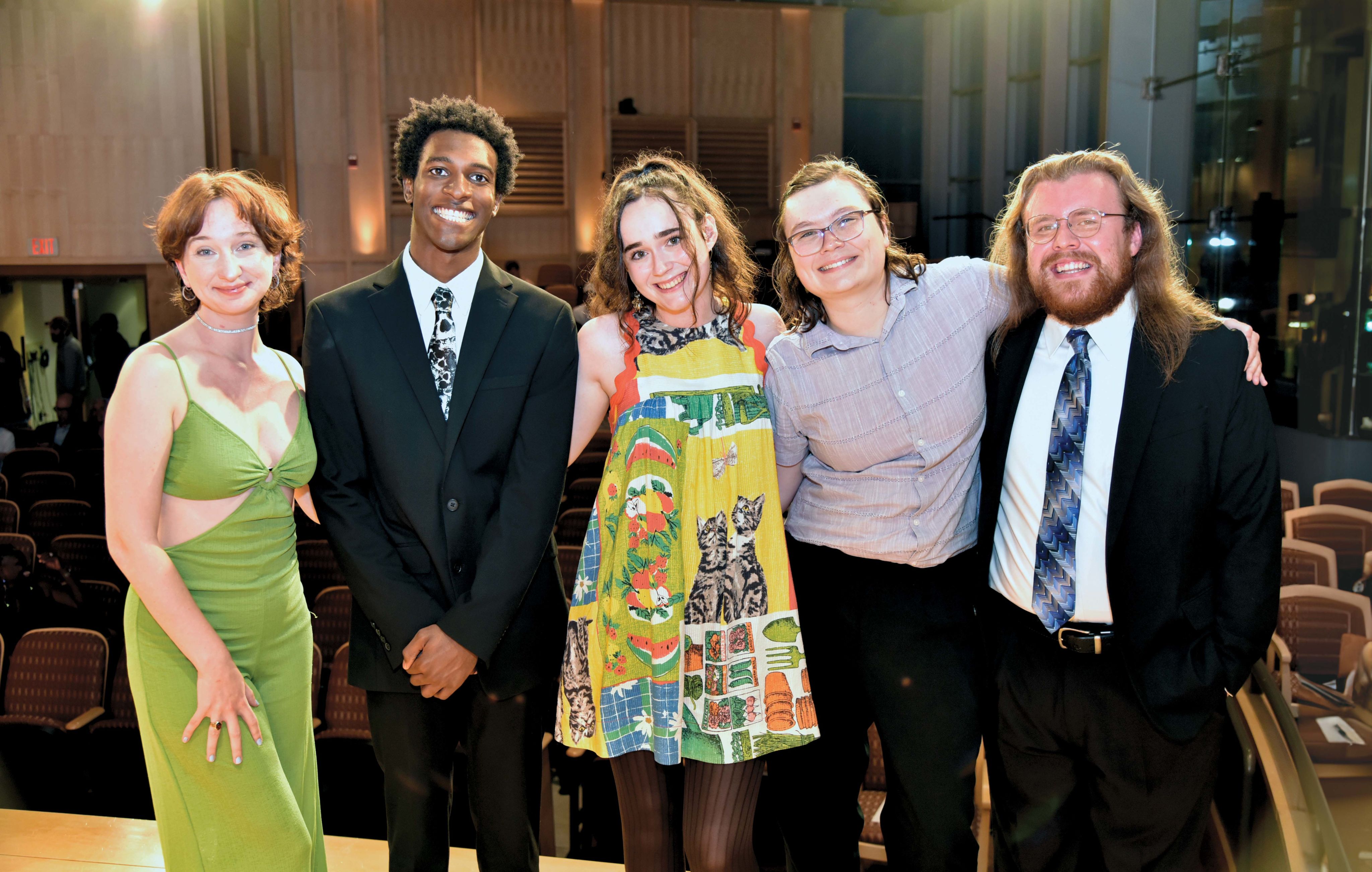 All five finalists for the 2024 Sophie Kerr Prize were from Maryland (from left to right): Liv Barry of Dundalk, Dante Chavez of Baltimore, Sophie Foster of Reisterstown, Vee Sharp of Westminster, and Joshua Torrence of Parkville. Photo by Matt Spangler.