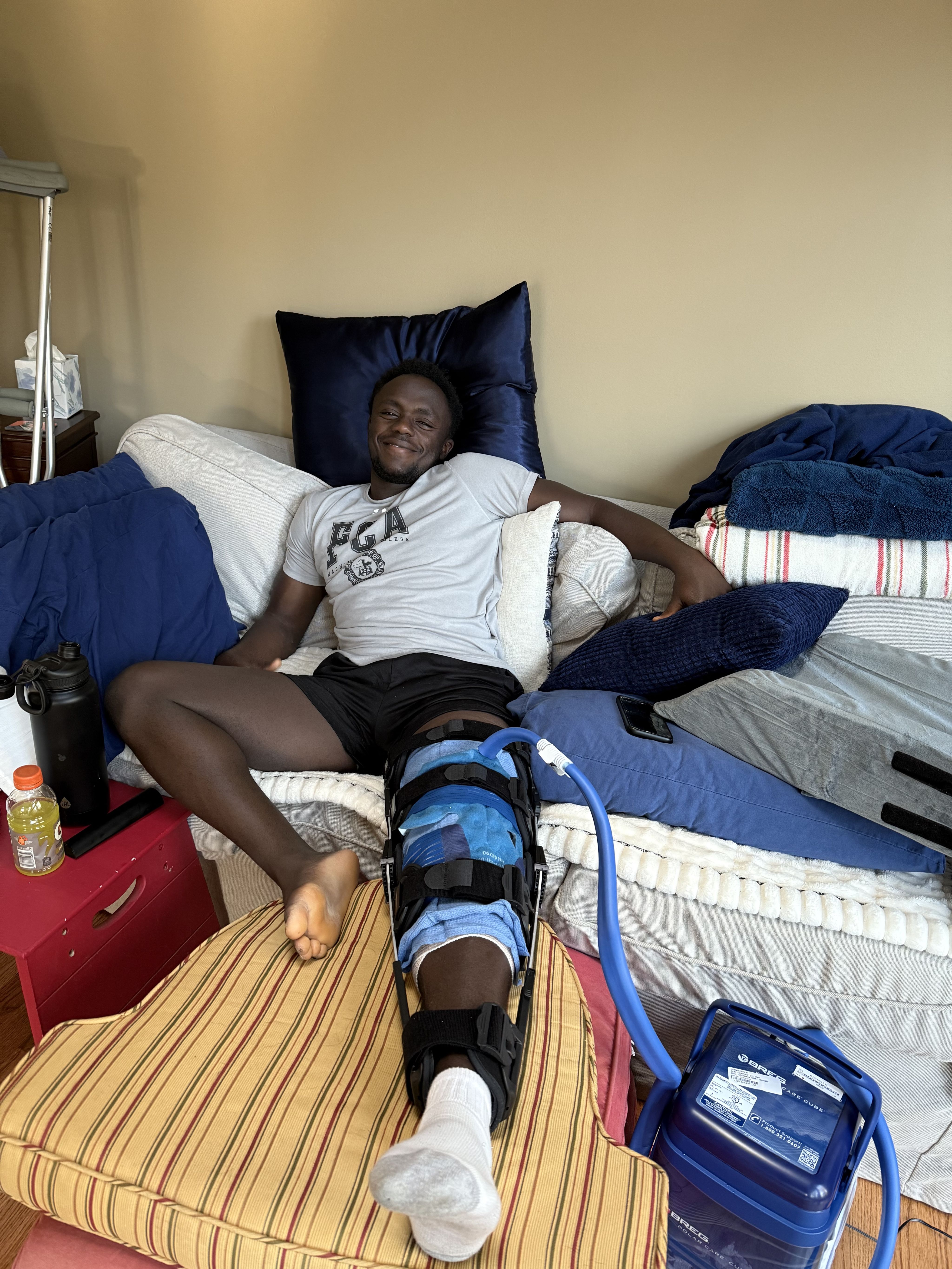 Just as the relationships he’s built in town feel permanent and deep, his bonds with teammates and peers are equally profound. When Kamau elected to have surgery on a troublesome knee, surgery that should resolve the issue without affecting his ability to play at the highest levels, it did make him incapacitated in the short term—he literally would not be able to put any weight on his leg for the first couple of months. That’s not easy for anyone, but when you’re living on the second floor in student accommodation, and your closest relative is a continent away, life could be quite complicated. Not so for Kamau. As soon as they heard about his operation, teammate Tucker Sprano ’27 and his family insisted on taking him into their home and looking after him until he was fully recovered. If Chestertown is like his extended family, the Spranos are like close family.